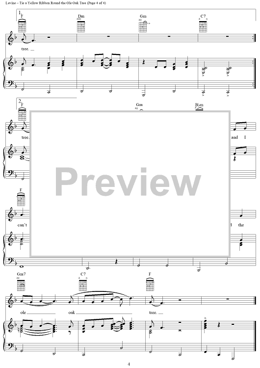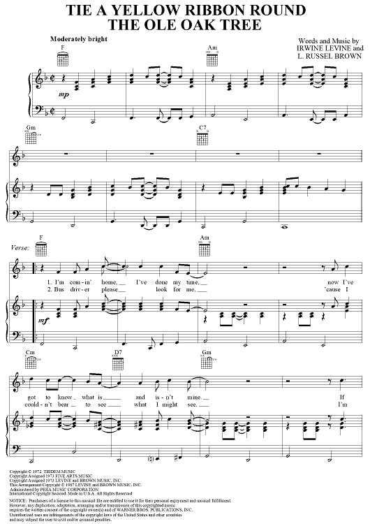 "Tie A Yellow Ribbon Round The Ole Oak Tree" Sheet Music by Irwin Levine