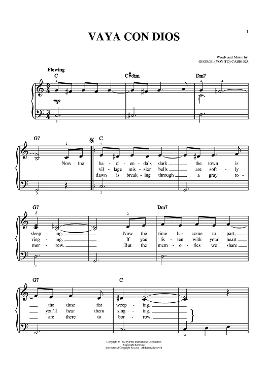 Digital Sheet Music for Vaya Con Dios by George (Yoyito) Cabrera scored for Easy Piano; id:367678