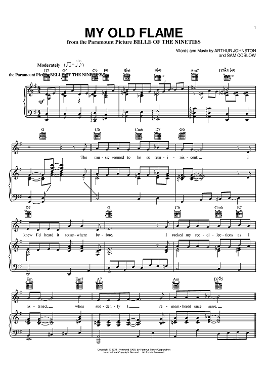 Digital Sheet Music for My Old Flame by Peggy Lee, Sam Coslow, Arthur Johnston scored for Piano/Vocal/Chords; id:368212