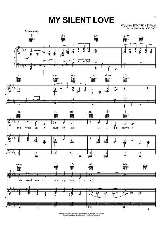 Digital Sheet Music for My Silent Love by Edward Heyman, Peggy Lee, Dana Suesse scored for Piano/Vocal/Chords; id:368213