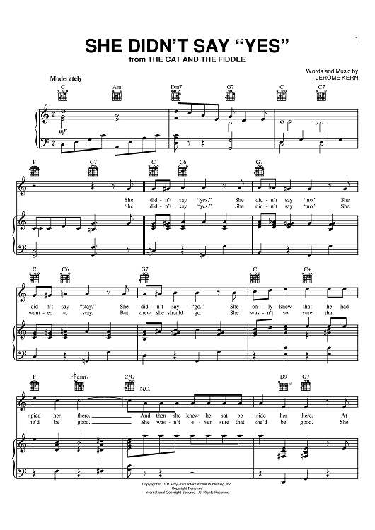 Digital Sheet Music for She Didn't Say Yes by Jerome Kern, Otto Harbach, Peggy Lee scored for Piano/Vocal/Chords; id:383804