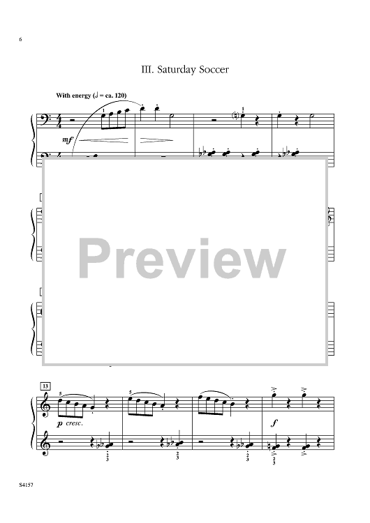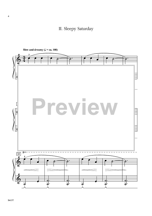 This easy sonatina in three short movements (Sunny Saturday, Sleepy Saturday, and Saturday Soccer), highlights one of everybody's favorite days! The easy eighth-note rhythms and small hand reaches make this a good choice for the late elementary student, providing enough of a challenge to build endurance playing a three-movement piece written with a modern theme and style. *** A NYSSMA selection in the current manual, effective July 2022-2025 ***