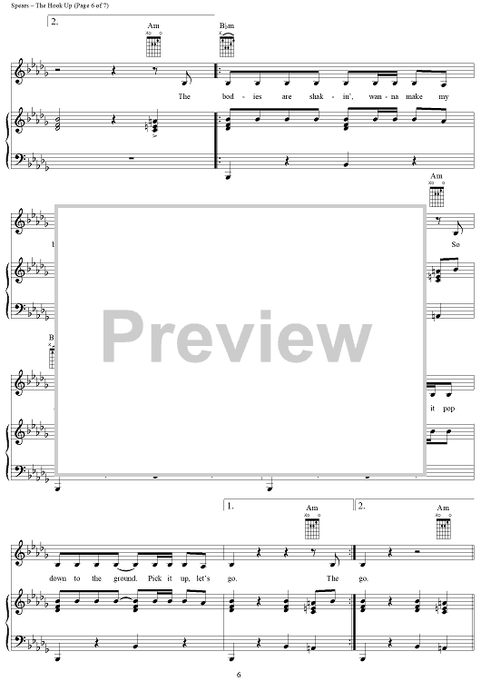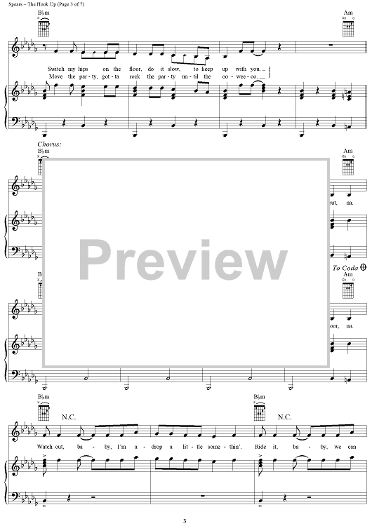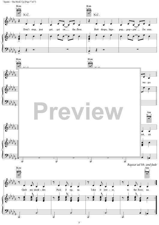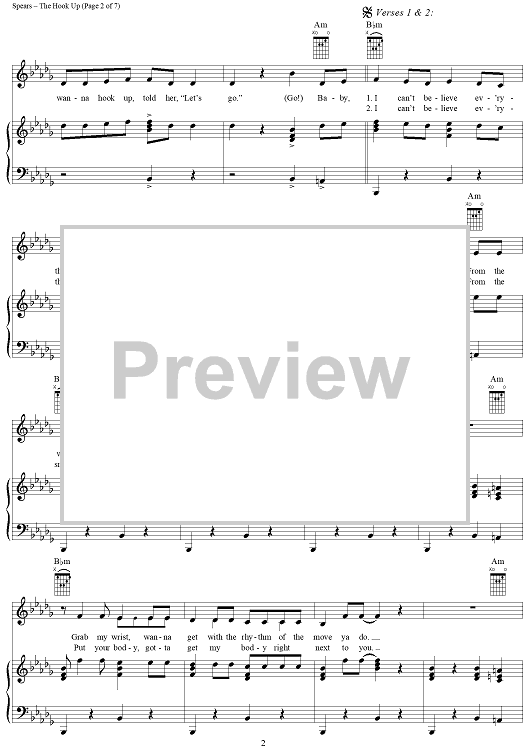 "The Hook Up" Sheet Music by Britney Spears