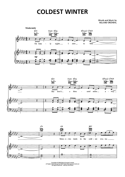 Digital Sheet Music for Coldest Winter by Roland Orzabal, Pentatonix scored for Piano/Vocal/Chords; id:465861