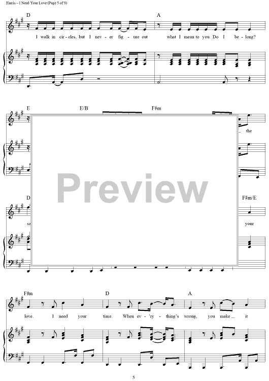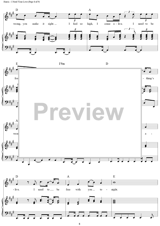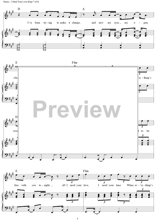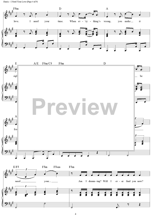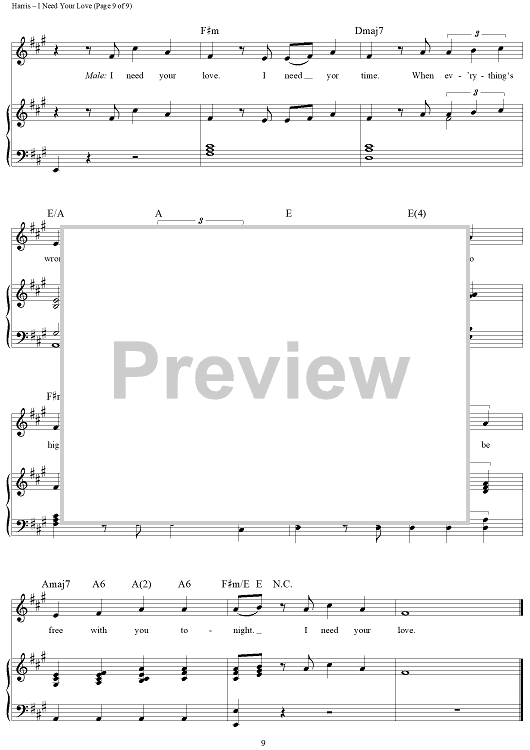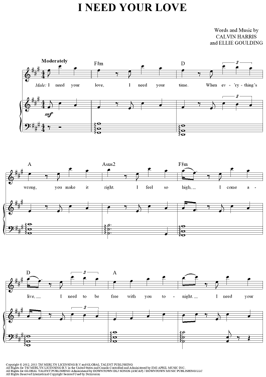 Digital Sheet Music for I Need Your Love by Calvin Harris, Ellie Goulding, Pentatonix scored for Piano/Vocal/Chords; id:453397