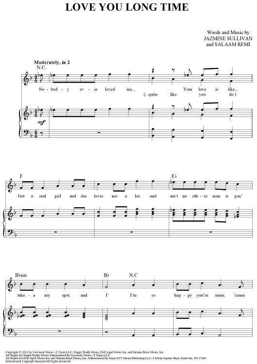 Digital Sheet Music for Love You Long Time by Salaam Remi, Pentatonix, Jazmine Sullivan scored for Piano/Vocal/Chords; id:453400
