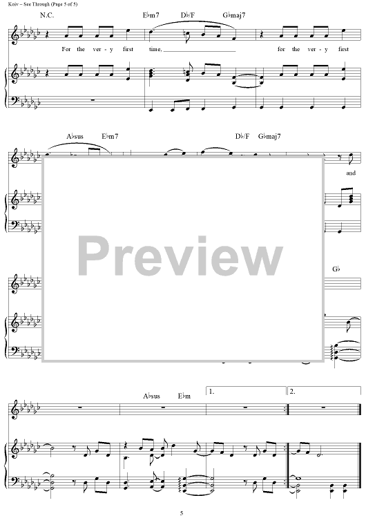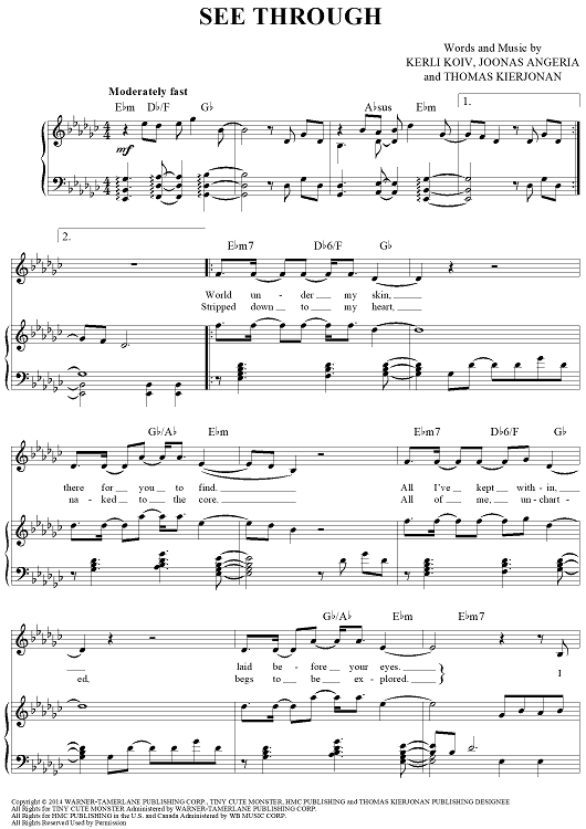 Digital Sheet Music for See Through by Pentatonix, Kerli Koiv, Joonas Angeria, Thomas Kierjonan scored for Piano/Vocal/Chords; id:456912