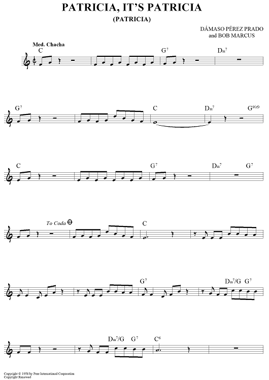 "Patricia, It's Patricia (Patricia)" Sheet Music by Perez Prado
