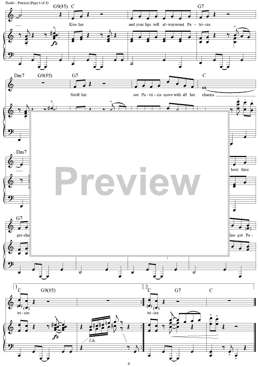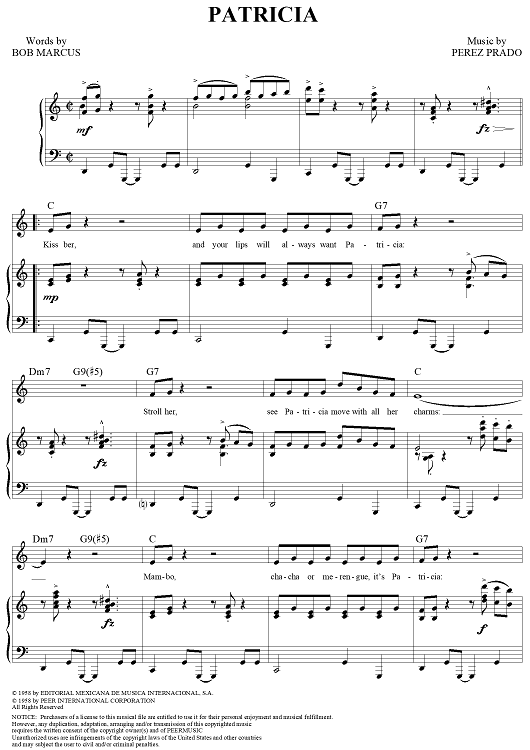 Digital Sheet Music for Patricia by Perez Prado, Bob Marcus scored for Piano/Vocal/Chords; id:254820