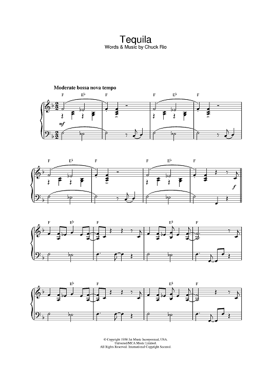 Digital Sheet Music for Tequila by Chuck Rio, The Champs, Perez Prado scored for Piano; id:376163