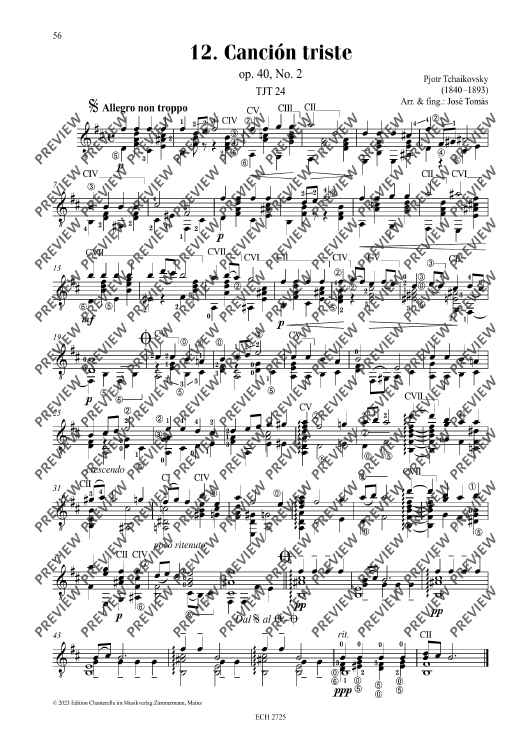 Digital Sheet Music for Canción Triste by Peter Ilyich Tchaikovsky, José Tomás scored for Guitar; id:500248