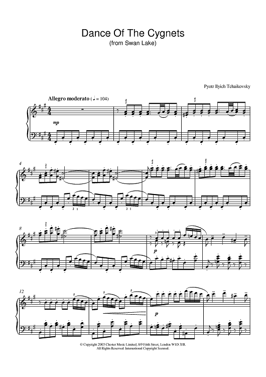 Digital Sheet Music for Dance Of The Cygnets (from Swan Lake) by Peter Ilyich Tchaikovsky scored for Piano; id:375696