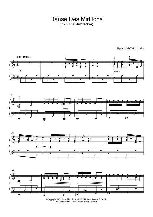 Digital Sheet Music for Danse Des Mirlitons (from The Nutcracker) by Peter Ilyich Tchaikovsky scored for Piano; id:375709