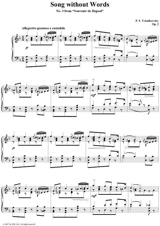 Digital Sheet Music for Get to Know Tchaikovsky. Song without Words by Peter Ilyich Tchaikovsky scored for Piano Solo; id:366605