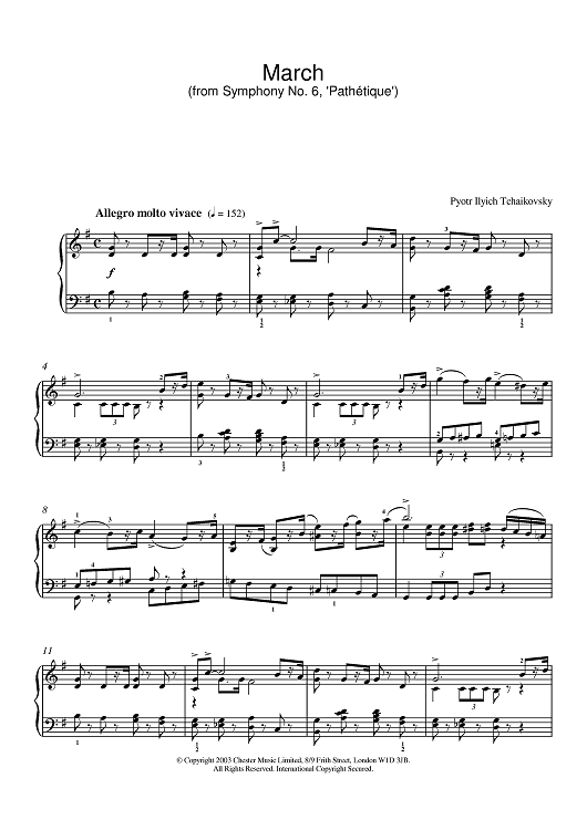 Digital Sheet Music for March (from Symphony No. 6, 'PathÉtique') by Peter Ilyich Tchaikovsky scored for Piano; id:375707