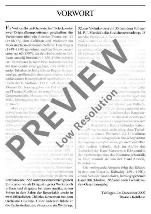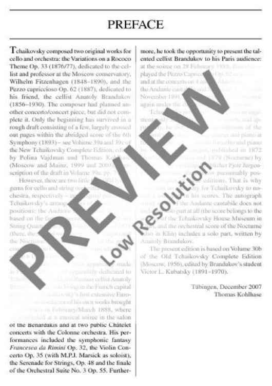 These little lyrical and sumptuous gem is based on the piano piece of the same name in C sharp minor, No. 4 of Six Pieces Op. 19. The arrangement was probably written in Paris in 1888 for his friend, the Russian cellist Anatoly Brandukov. The current edition is based on the edition from the volume of the old Tchaikovsky Complete Edition published by Victor L. Kubacky (1891-1970), a pupil of Brandukov.