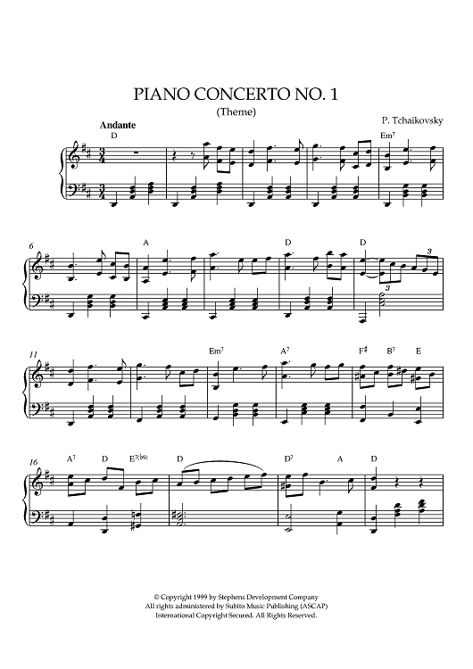 "Piano Concerto No. 1 (Theme)" Sheet Music by Peter Ilyich Tchaikovsky