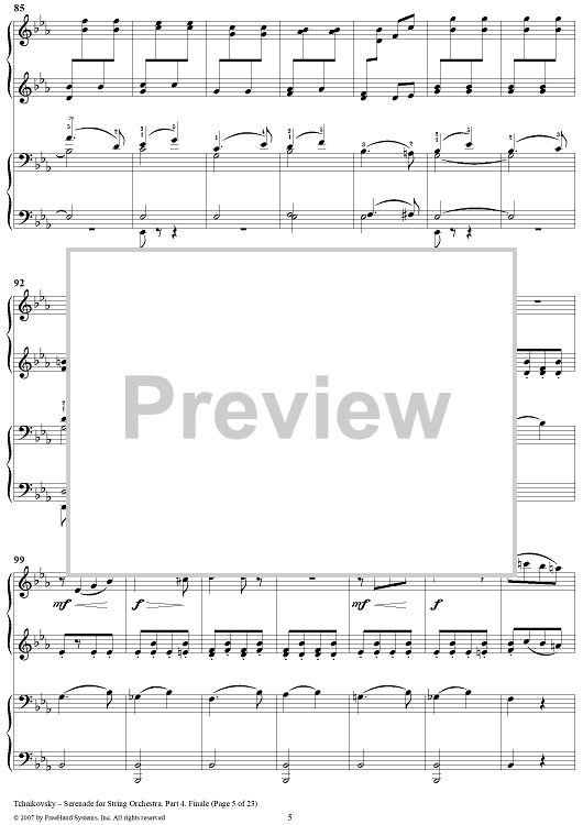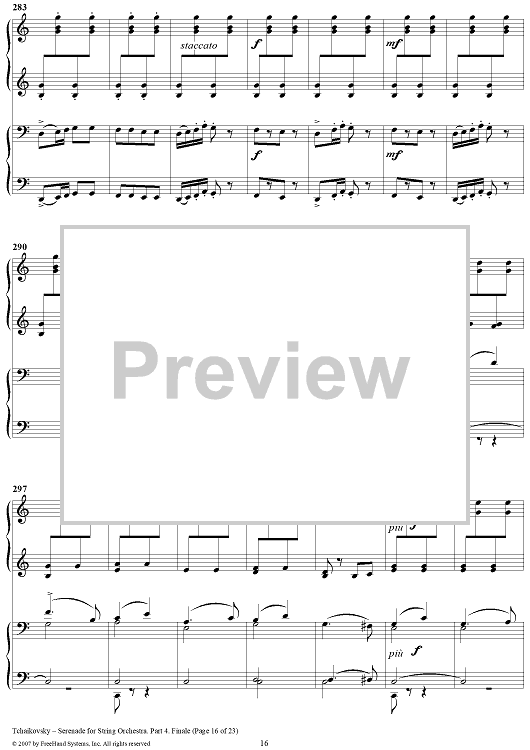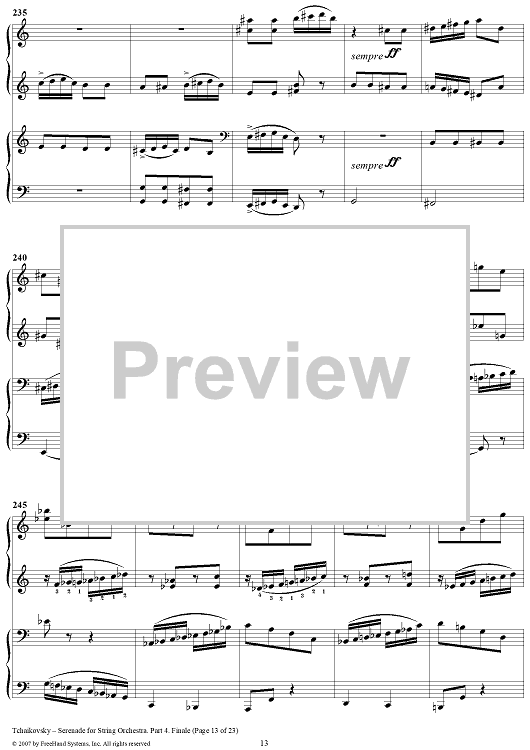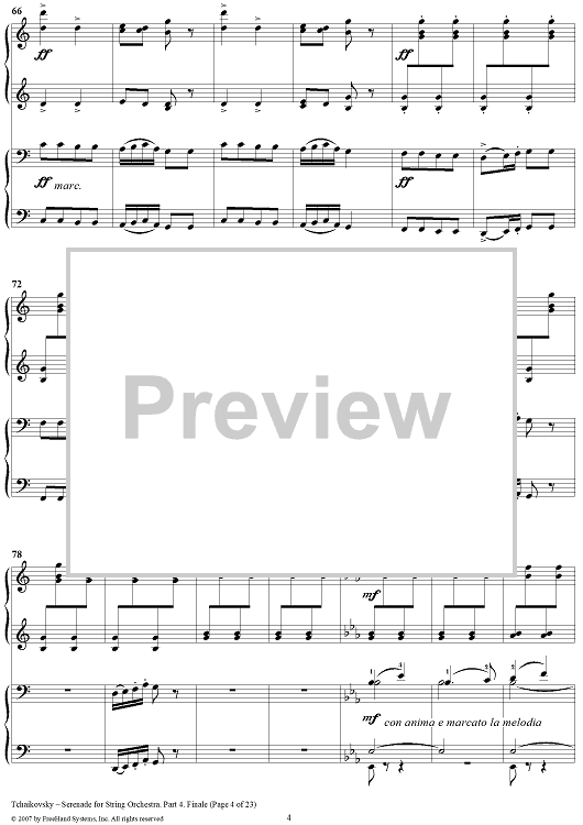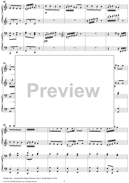 Digital Sheet Music for Serenade for String Orchestra. Part 4. Finale by Peter Ilyich Tchaikovsky scored for 1 Piano, 4 Hands; id:364869