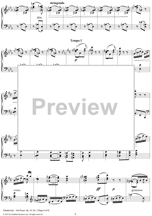 Digital Sheet Music for Six Pieces. No. 2. Humorous Scherzo by Peter Ilyich Tchaikovsky scored for Piano Solo; id:365143