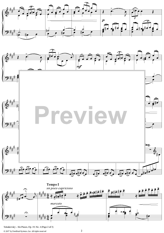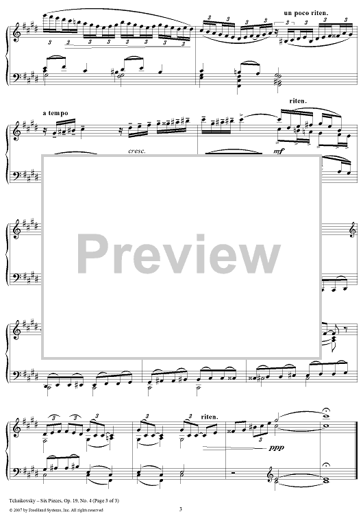 Digital Sheet Music for Six Pieces. No. 4. Nocturne by Peter Ilyich Tchaikovsky scored for Piano Solo; id:365145