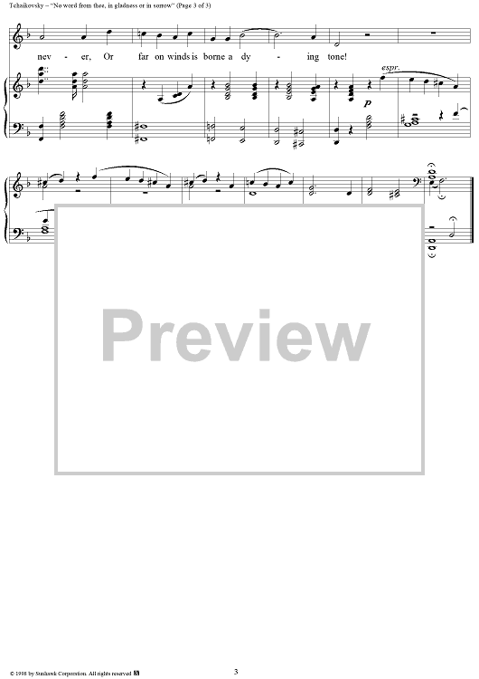 Digital Sheet Music for Six Romances and Songs. No. 5. No Response, or Word, or Greeting by Peter Ilyich Tchaikovsky scored for Voice/Piano; id:264247