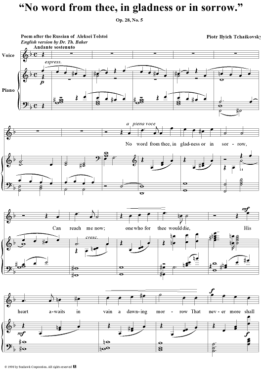 "Six Romances and Songs. No. 5. No Response, or Word, or Greeting" Sheet Music by Peter Ilyich Tchaikovsky