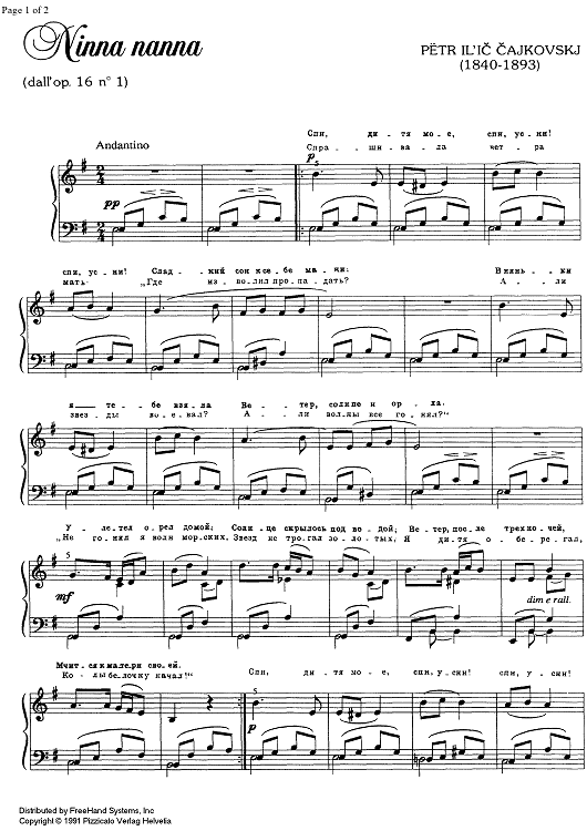 Digital Sheet Music for Six Romances. No. 1. Cradle Song by Peter Ilyich Tchaikovsky scored for Easy Piano/Vocal; id:331490