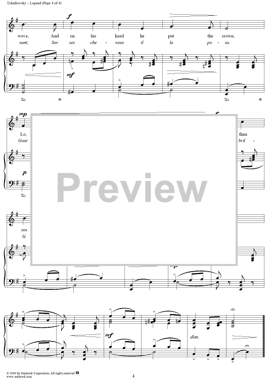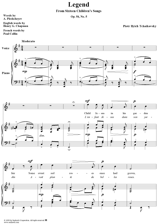 Digital Sheet Music for Sixteen Children's Songs. No. 5. A Legend by A. Pleshcheyev, Peter Ilyich Tchaikovsky scored for Voice/Piano; id:118318