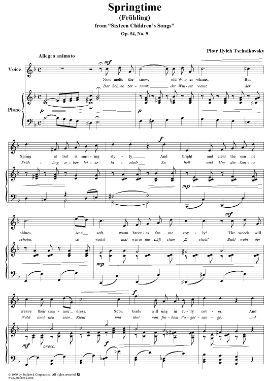 "Sixteen Children's Songs. No. 9. Spring (The Snow's Already Melting)" Sheet Music by Peter Ilyich Tchaikovsky