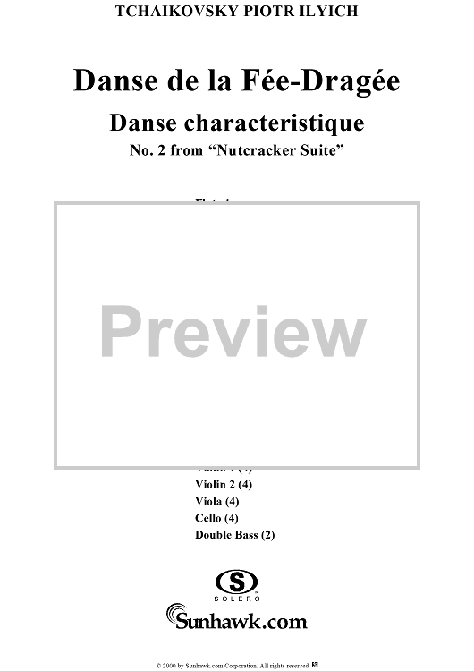 Digital Sheet Music for Suite from ''The Nutcracker''. Dance de la Fée-Dragée - Full Score by Peter Ilyich Tchaikovsky scored for Orchestra; id:259691