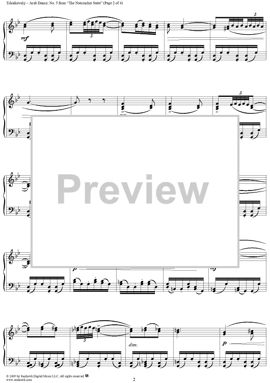 "Suite from ''The Nutcracker''. Danse arabe" Sheet Music by Peter Ilyich Tchaikovsky