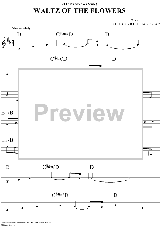 Digital Sheet Music for Suite from ''The Nutcracker''. Valse des fleurs (Theme) by Peter Ilyich Tchaikovsky scored for Lead Sheet; id:235696