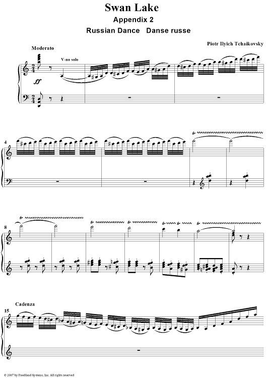 "Swan Lake. Appendix 2. Russian Dance" Sheet Music by Peter Ilyich Tchaikovsky