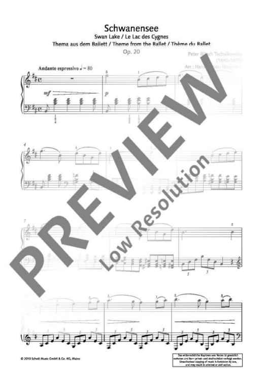 Digital Sheet Music for Swan Lake by Peter Ilyich Tchaikovsky, Hans-Guenter Heumann scored for Piano; id:478249
