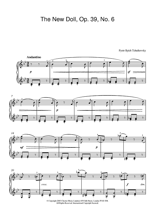 "The New Doll, Op. 39, No. 6 (from Album For The Young)" Sheet Music by Peter Ilyich Tchaikovsky