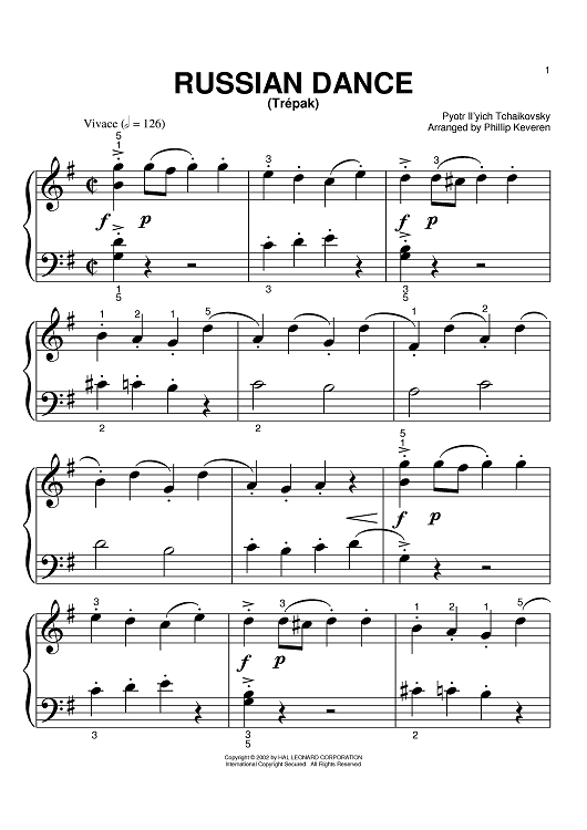 "The Nutcracker. Russian Dance ("Trepak")" Sheet Music by Peter Ilyich Tchaikovsky