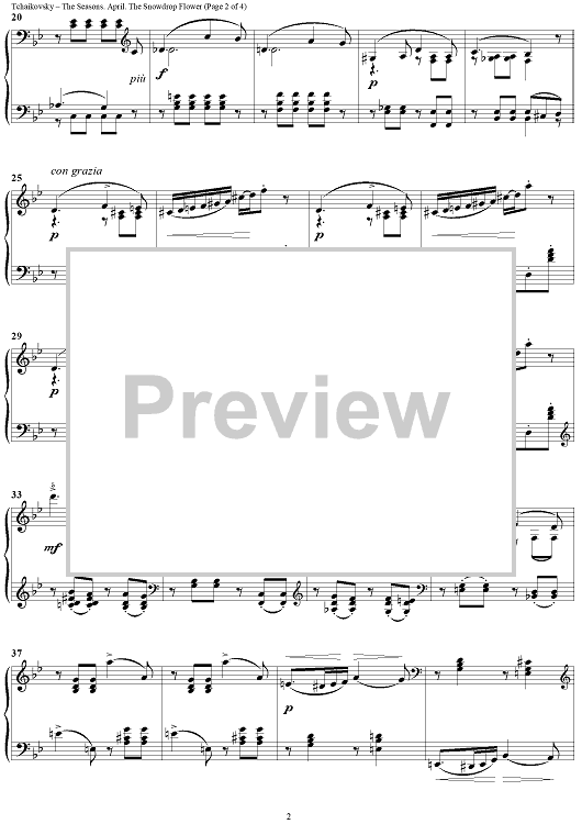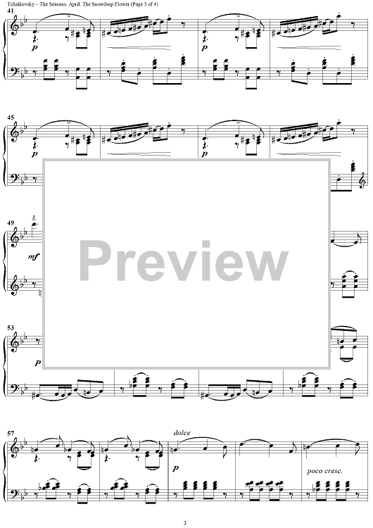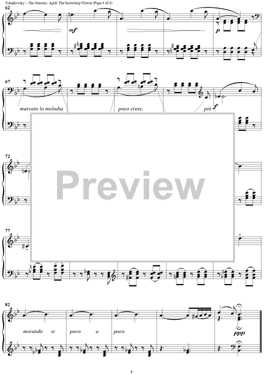 Digital Sheet Music for The Seasons - April. The Snowdrop Flower by Peter Ilyich Tchaikovsky scored for Piano Solo; id:468223