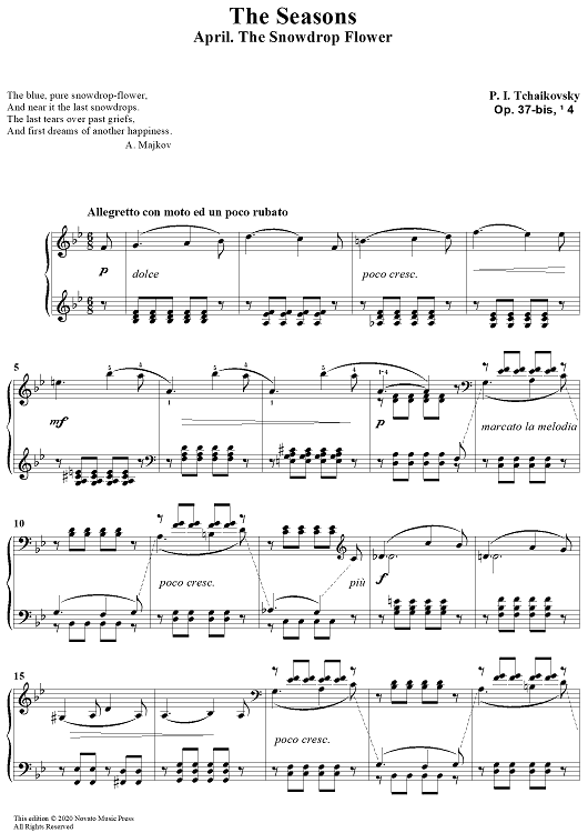 "The Seasons - April. The Snowdrop Flower" Sheet Music by Peter Ilyich Tchaikovsky