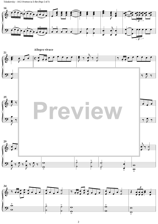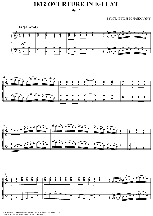 Digital Sheet Music for The Year 1812 - Festival Overture in E-flat Major (Es-dur) by Peter Ilyich Tchaikovsky scored for Piano Solo; id:375697