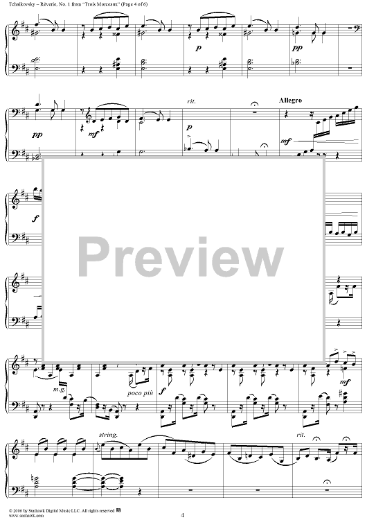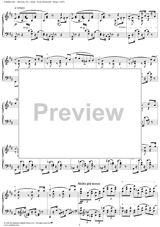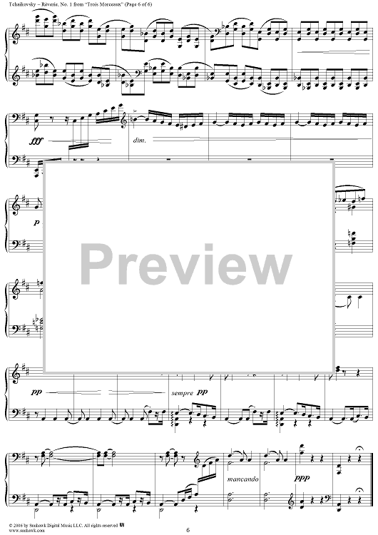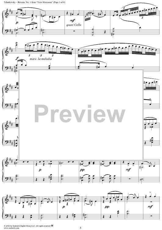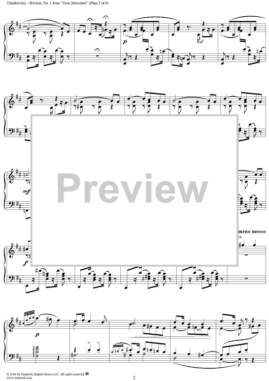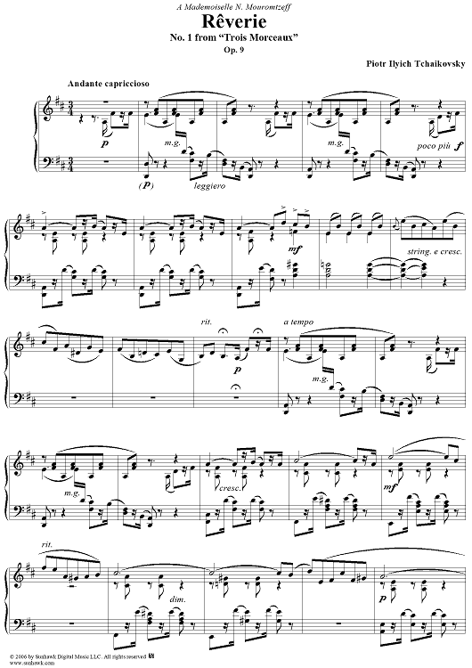 Digital Sheet Music for Three Pieces. No. 1. Rêverie by Peter Ilyich Tchaikovsky scored for Piano Solo; id:315849