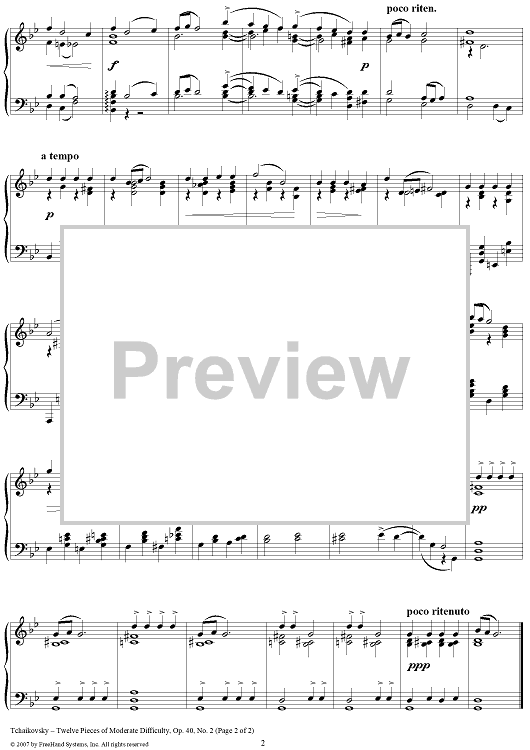 Digital Sheet Music for Twelve Pieces of Moderate Difficulty. No. 2. Chanson Triste by Peter Ilyich Tchaikovsky scored for Piano Solo; id:365083