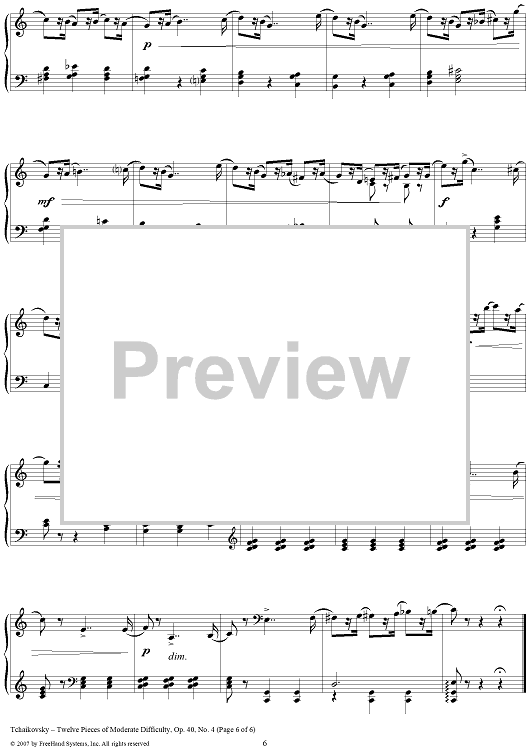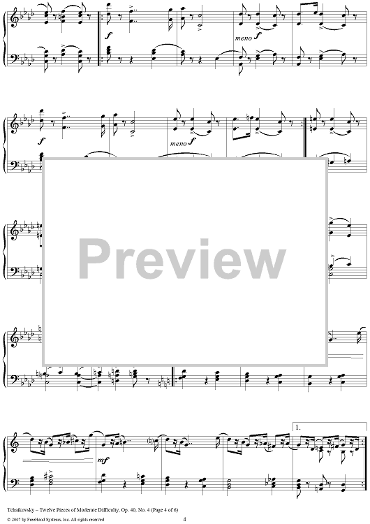 Digital Sheet Music for Twelve Pieces of Moderate Difficulty. No. 4. Mazurka by Peter Ilyich Tchaikovsky scored for Piano Solo; id:365085