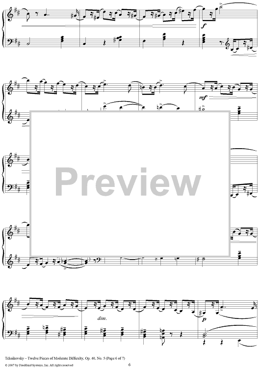Digital Sheet Music for Twelve Pieces of Moderate Difficulty. No. 5. Mazurka by Peter Ilyich Tchaikovsky scored for Piano Solo; id:365086