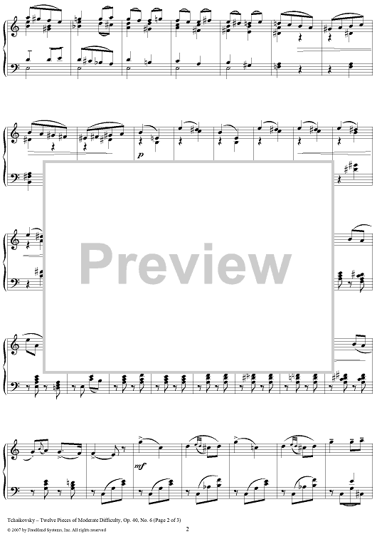 Digital Sheet Music for Twelve Pieces of Moderate Difficulty. No. 6. Song without Words by Peter Ilyich Tchaikovsky scored for Piano Solo; id:365087