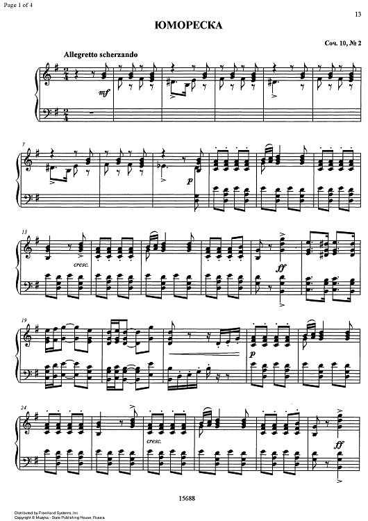 Digital Sheet Music for Two Pieces. No. 2. Humoresque by Peter Ilyich Tchaikovsky scored for Piano Solo; id:337266
