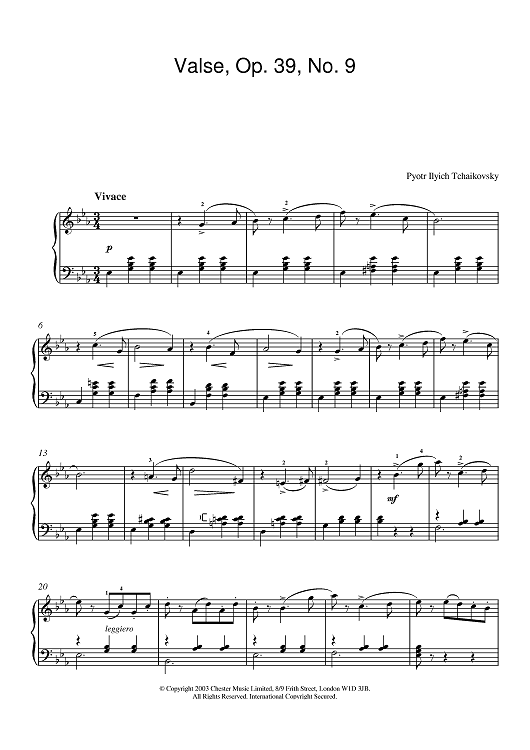 "Valse, Op. 39, No. 9" Sheet Music by Peter Ilyich Tchaikovsky