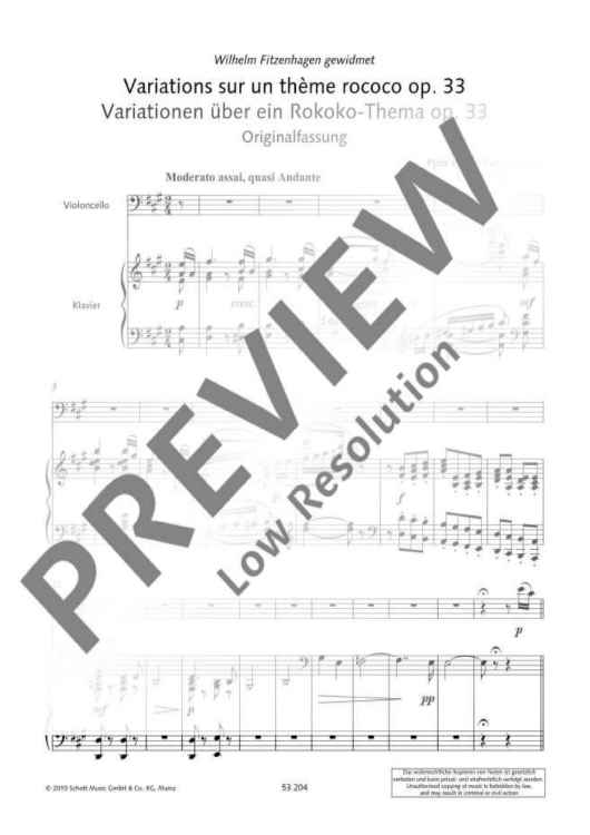 "Variationen über ein Rokoko-Thema op. 33" Sheet Music by Peter Ilyich Tchaikovsky
