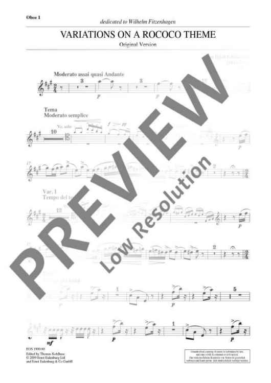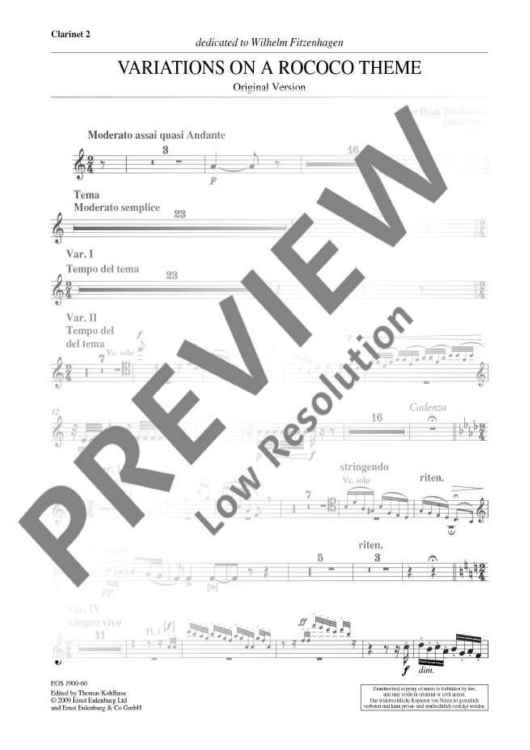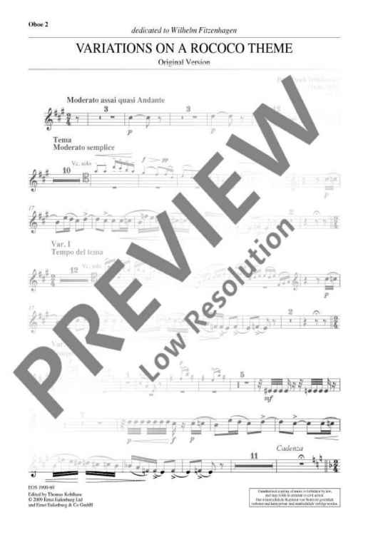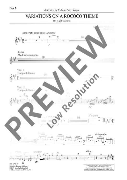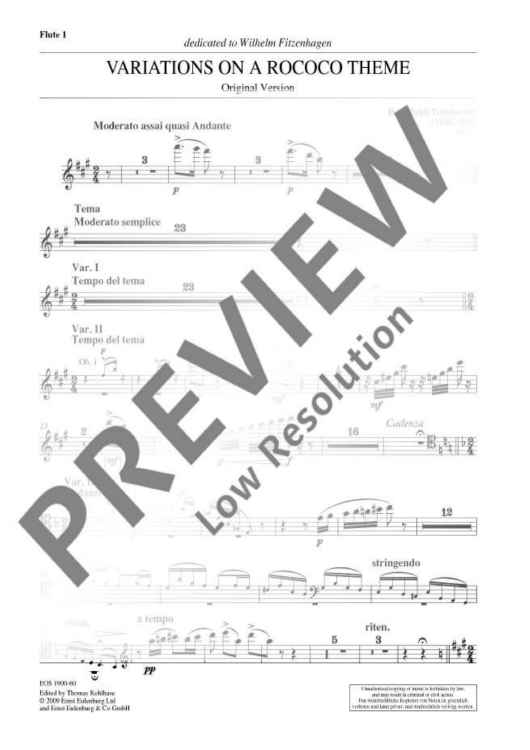"Variations on a Rococo Theme for Cello and Orchestra in A major - Set of Parts" Sheet Music by Peter Ilyich Tchaikovsky