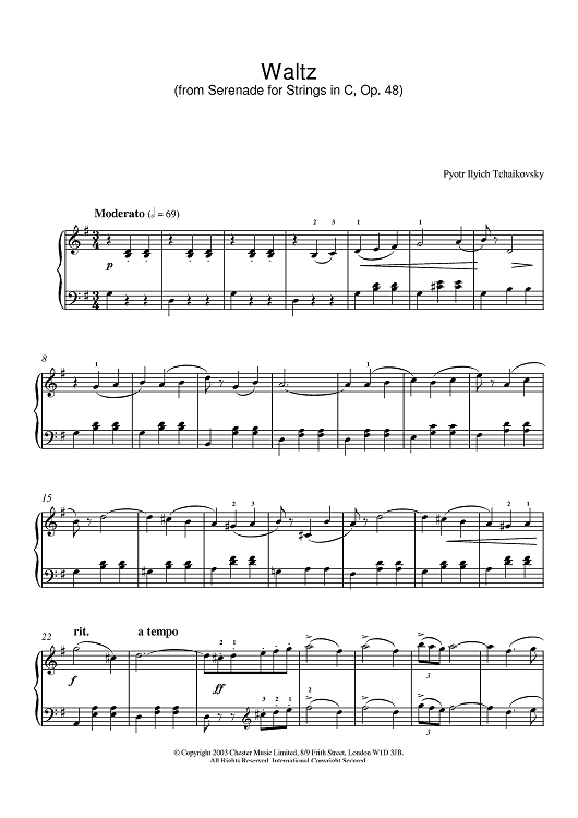 Digital Sheet Music for Waltz (from Serenade for Strings In C, Op. 48) by Peter Ilyich Tchaikovsky scored for Piano; id:375710
