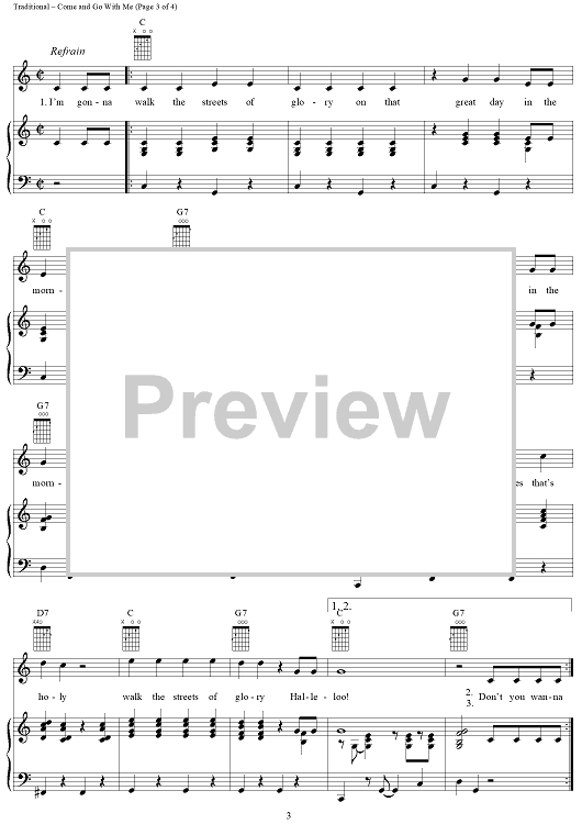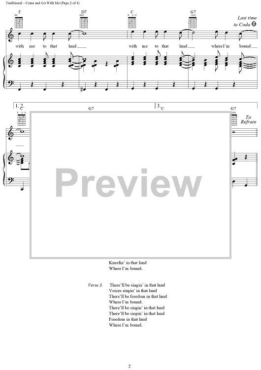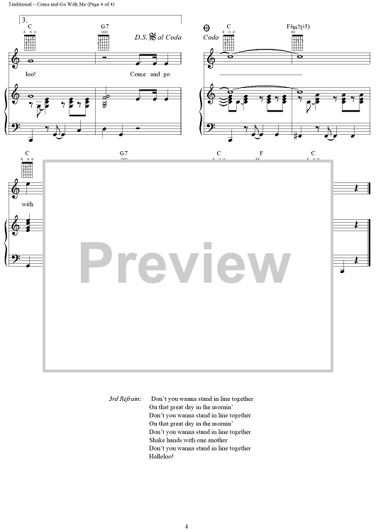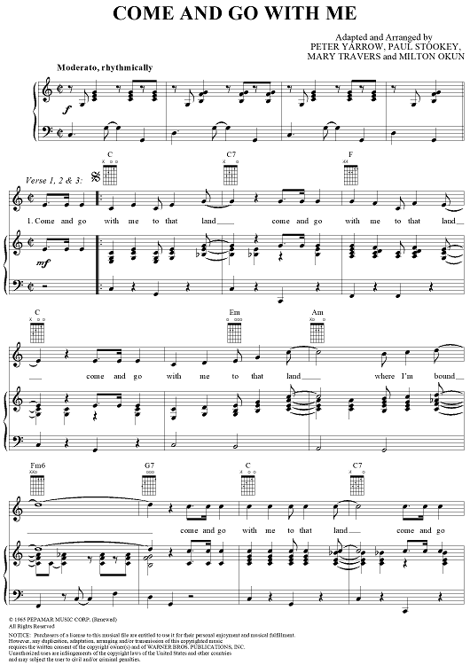 Digital Sheet Music for Come and Go with Me by Paul Stookey, Milton Okun, Mary Travers, Joe and Eddie, Peter Yarrow, Peter, Paul and Mary, Traditional scored for Piano/Vocal/Chords; id:124183